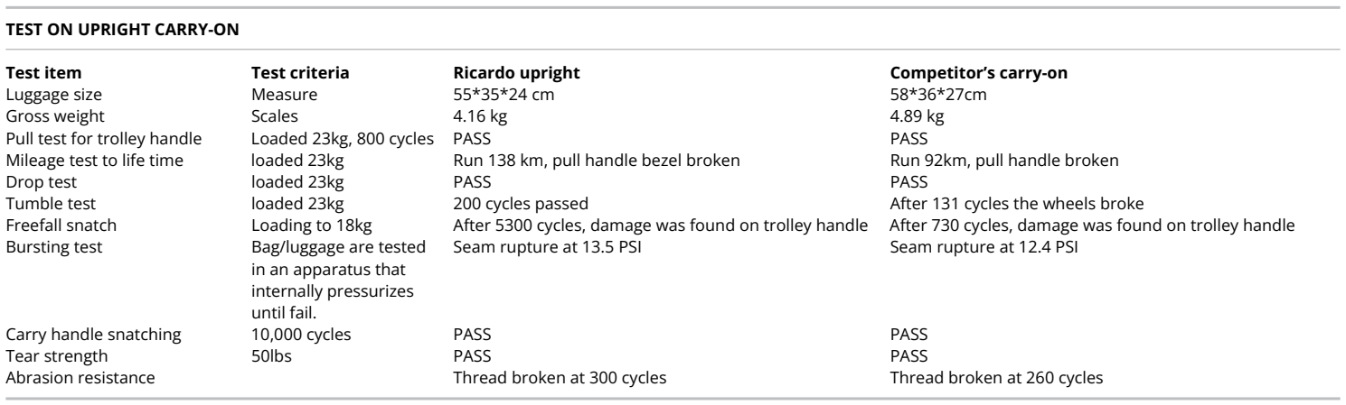 The Flight Essentials Carry On range has undergone a suite of tests by MTS, an independent testing lab.